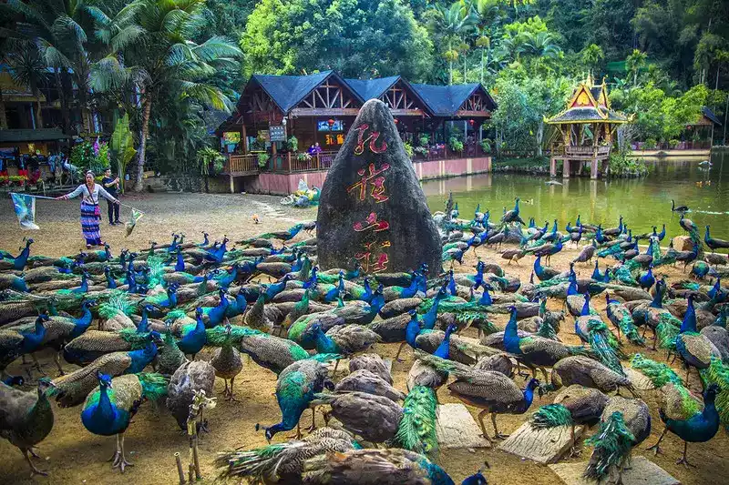 Xishuangbanna Primeval Forest Park is the closest primeval forest to Jinghong. It is also one of the largest comprehensive eco-tourism attractions in Xishuangbanna. The most spectacular sight in the park is the release of peacocks and the dancing of hundreds of birds.