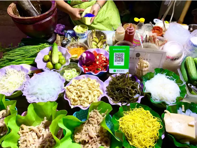 Banna's cuisine is mostly spicy and sour, and they love barbecue. In Banna, you can pound everything: pounded chicken feet, pounded instant noodles, curry chicken, curry shrimp, pineapple rice, lemongrass grilled fish, grilled pork belly, grilled chicken, coconut ice, durian, and more—don't miss it.