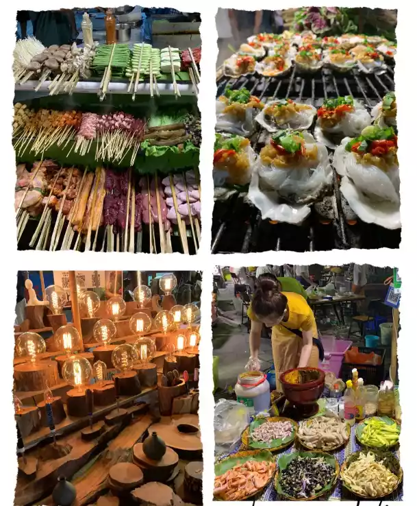 First of all, the first thing to do at the night market is to eat: Many Yunnan dishes are sour and spicy, perfect for those with a stronger palate. If you mind, just eat as you please. You can eat as much as you want at the night market! There are all kinds of rice noodles, barbecued vegetables, fish, roasted chicken, and fruit! They're super delicious!