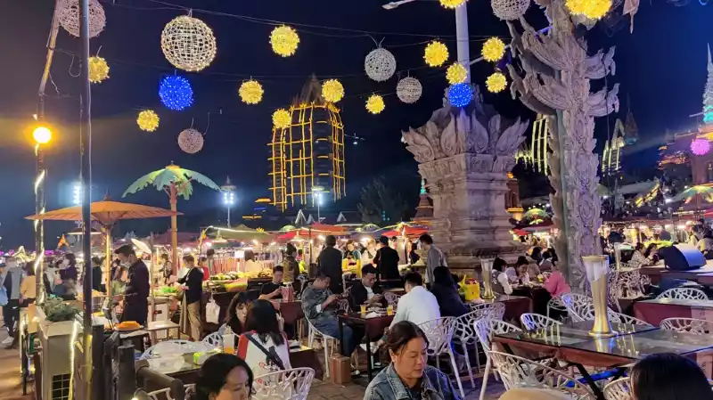 The largest night market, here is brightly lit at night, with a variety of small commodities, food, internet celebrity photos, Dai song and dance performances, etc. It is very lively