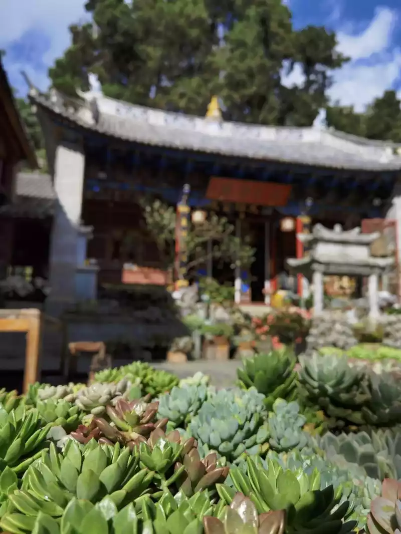 Continue walking from Gantong Temple and you'll find Jizhao Nunnery. I've visited many temples in China, but rarely nunneries, mainly because there are so few of them. This time, we came across Jizhao Nunnery. It's said to be the most beautiful nunnery in China. Unlike the temples, this place has a unique and fresh feel. I was surprised to see so many succulents there, and they're all growing beautifully.