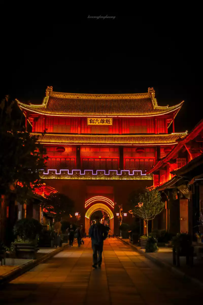 Compared to the daytime, the Weishan Ancient City adds a touch of mystery at night.