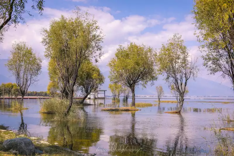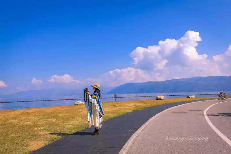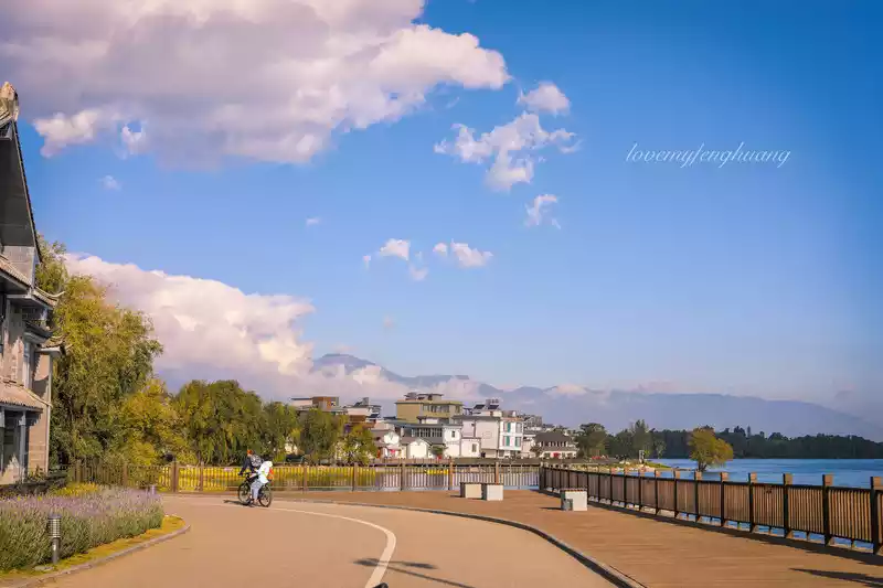 Starting from Yangnan Creek, there is a wooden plank road that stretches for more than 40 kilometers around Erhai Lake. You can walk all the way to Taoyuan Village. If you want to save energy, you can also ride a bicycle or take an electric car