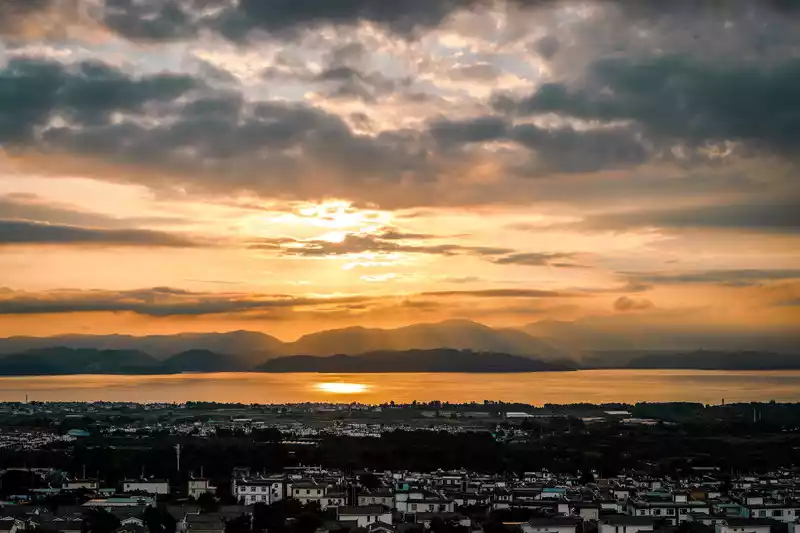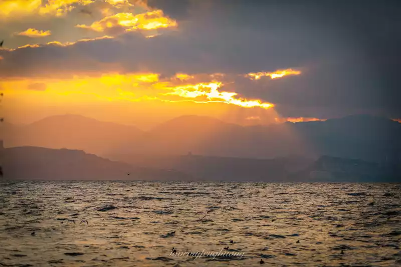 It is a blessing and a relief to be able to see the sunrise. When the first rays of sunlight shine on Erhai Lake in the morning, the sparkling water surface sparkles with dazzling light.
