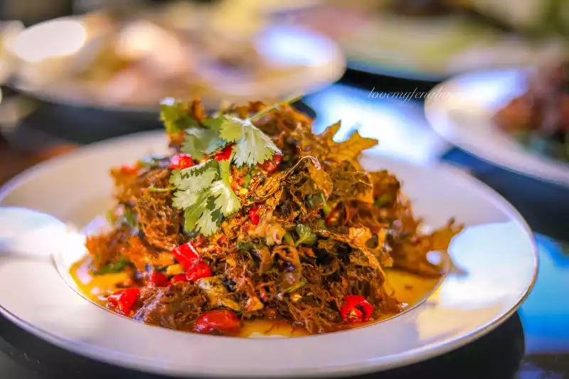 Delicious dishes such as wasabi shrimp balls, seaweed flowers, cold bark vegetables, mushroom hot pot, etc.