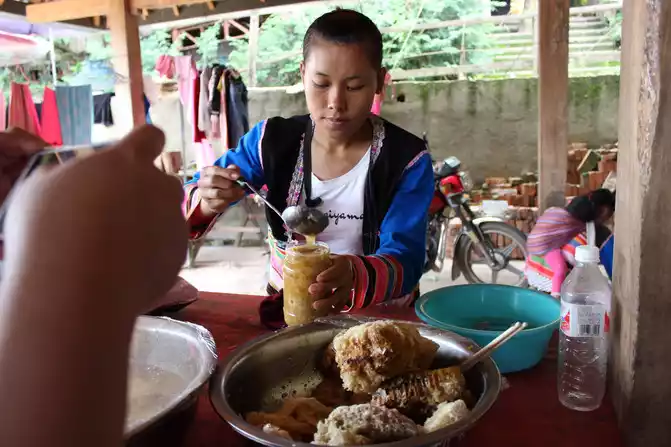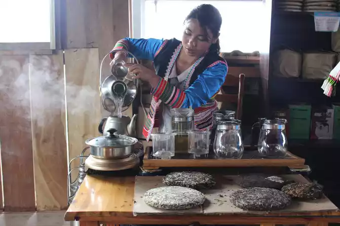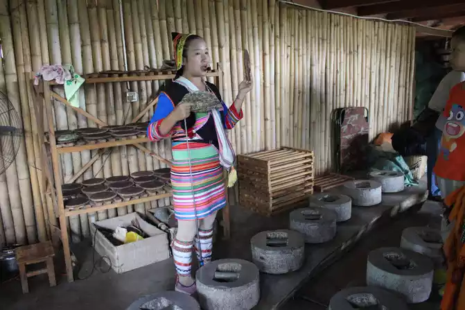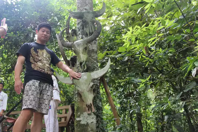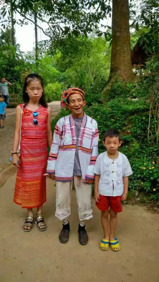 This patriarch is 88 years old. Look at his teeth, they are completely black. The tour guide said they use soot from the bottom of the pot to wash the teeth. The darker the teeth, the healthier and more beautiful they are. There are big differences in ethnic customs.