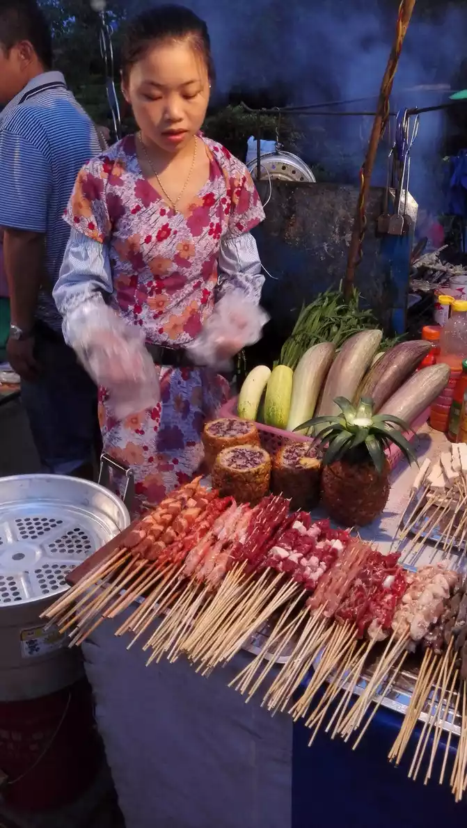 This is how you buy barbecue in Banna. Beef, 25 yuan a skewer.