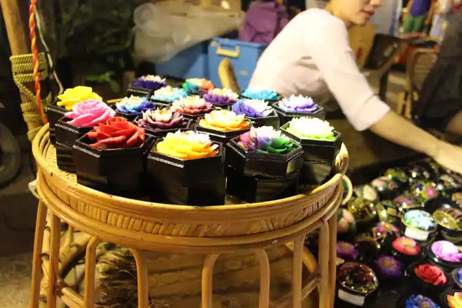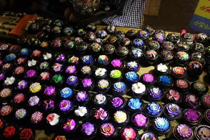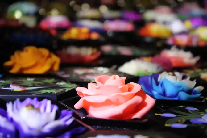 The soap flowers hand-carved by the artist on site are very delicate and have collection value.