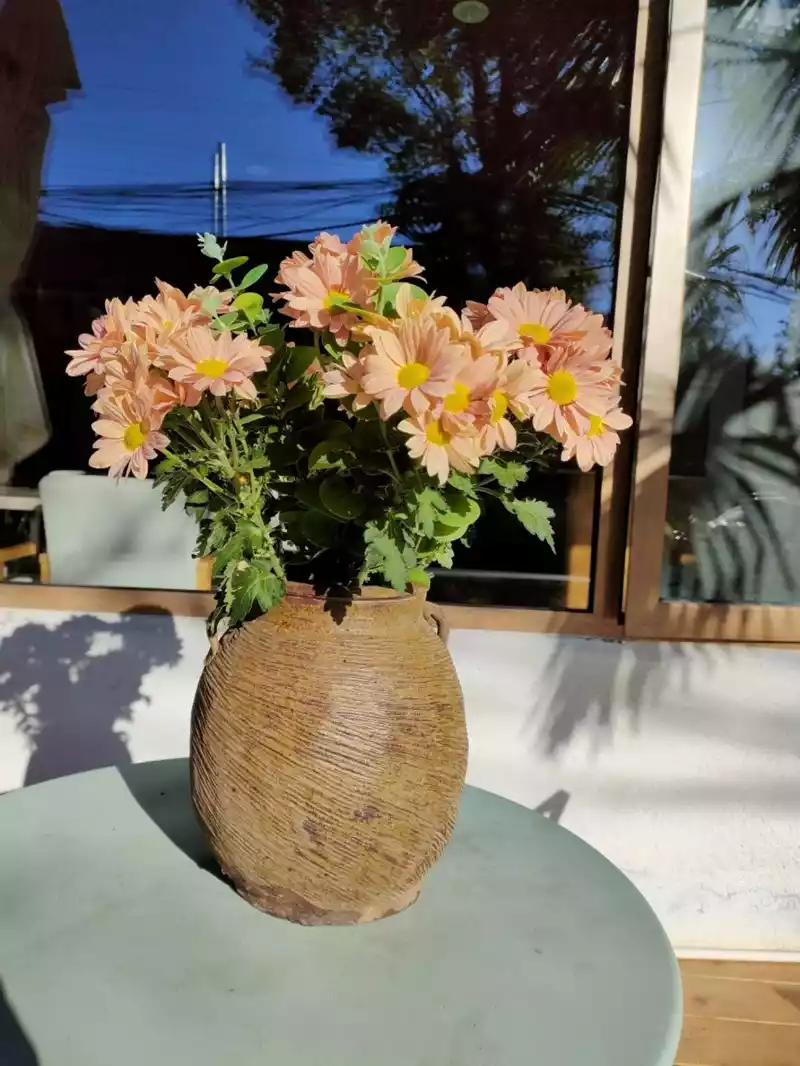 We stayed at an inn this time. There was a small coffee table at the entrance, with a beautiful flower arrangement on it.