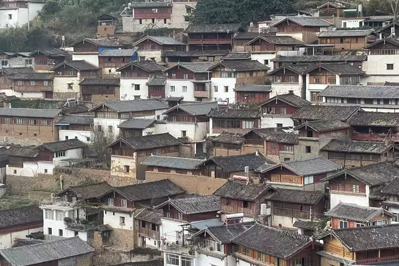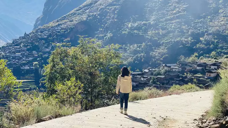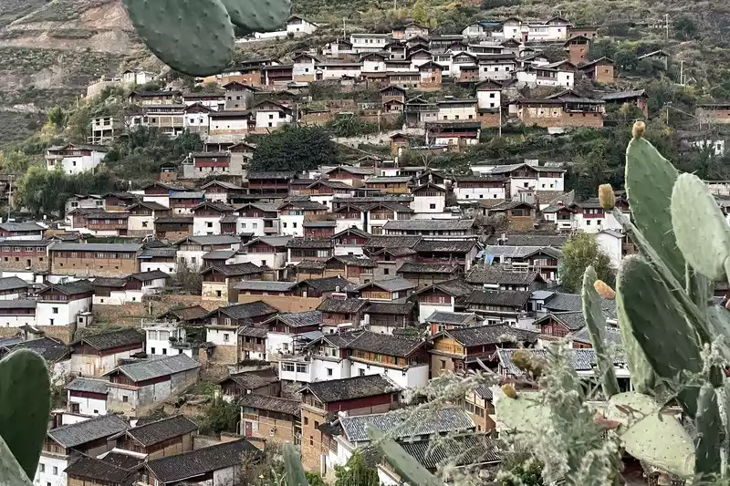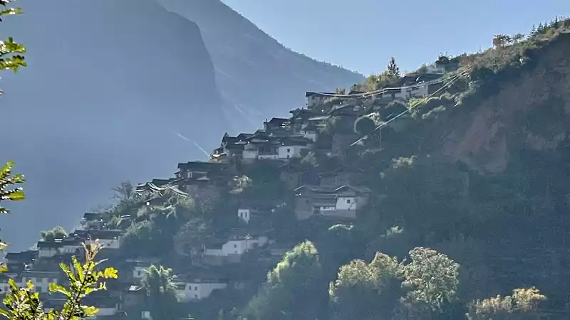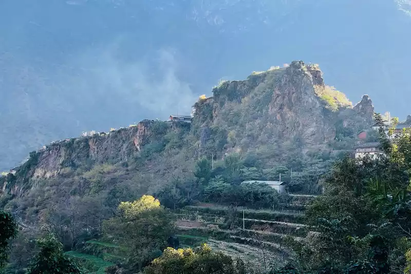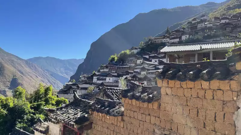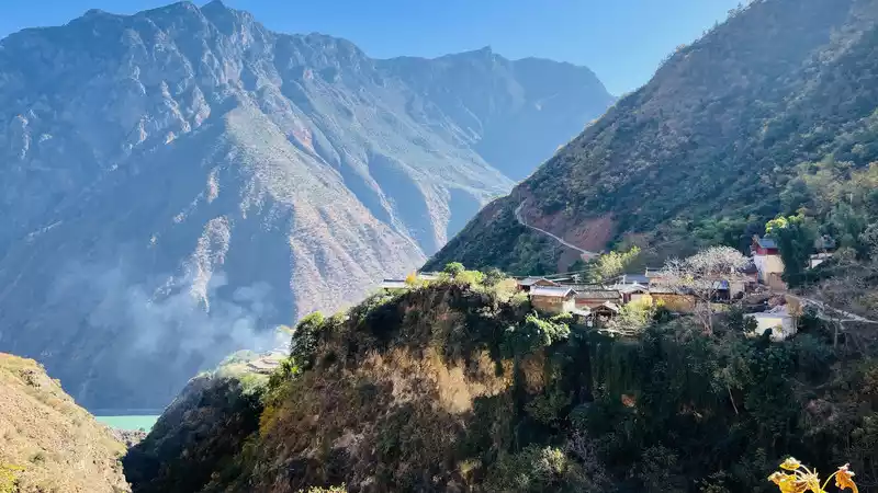 After checking the information, I found out that this is a village located on a rock of about 0.5 square kilometers. Most of the more than 100 households are Naxi. "He" and "Mu" are the two major surnames here. The village is located in the canyon of the Jinsha River, with mountains on three sides and a river on one side. The terrain is difficult and access can only be achieved by walking.