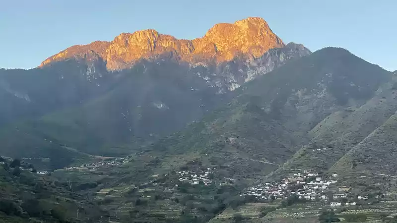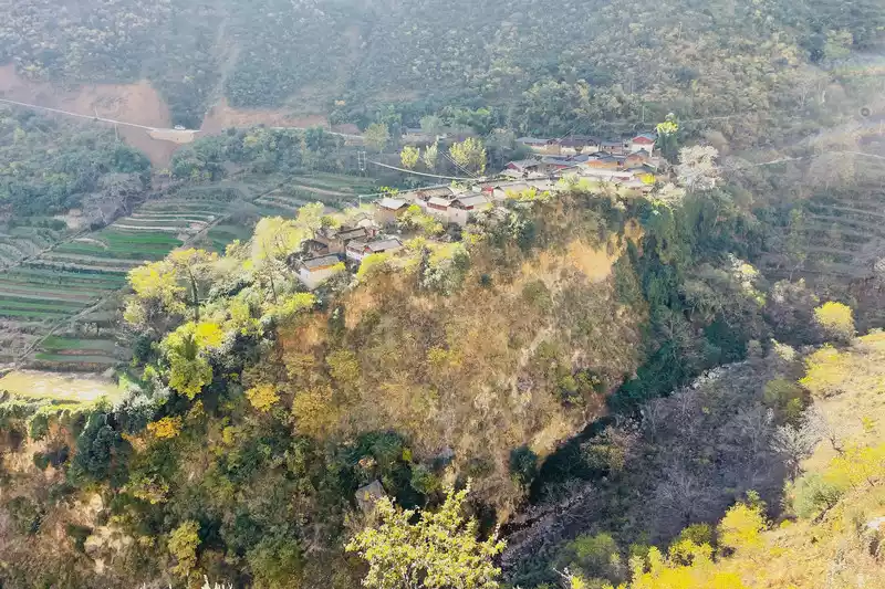 After passing through Yanshuangluo Village, we entered the mountain. Looking back at the village built on a heart-shaped rock, it was quiet and peaceful.