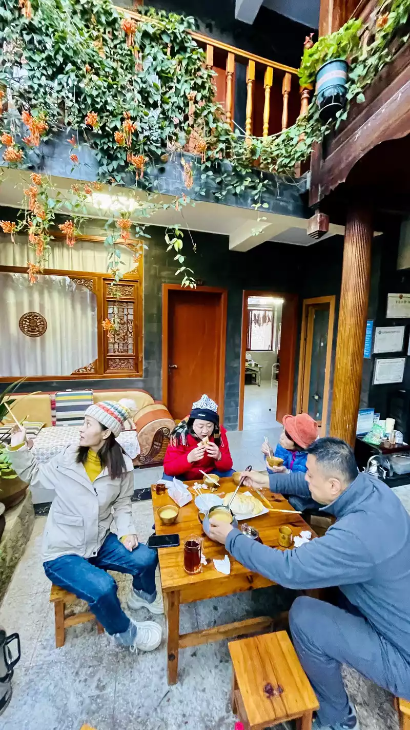 The small courtyard under the Chaoyang is warm and gentle, and the sweet potato porridge, white water eggs, and fried pancakes will warm your stomach. The team leader told us about today’s arrangements. My brother and sister all had air tickets on the 4th (the next day), so we had to rush back to Lijiang today. Due to the time restrictions on the entry and exit of road construction vehicles mentioned above, we expected to leave the village at 2 or 3 o’clock after lunch and queue up early to wait for the traffic to open. So you only have one morning to play, so free time! The brother and sister didn't want to go far, so the team leader suggested that they visit the ancient houses in the village and learn about Naxi culture.