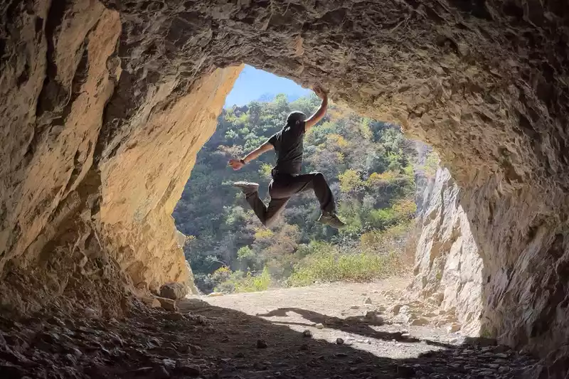 Another fierce slap, spinning and jumping at the entrance of the cave, very happy.
