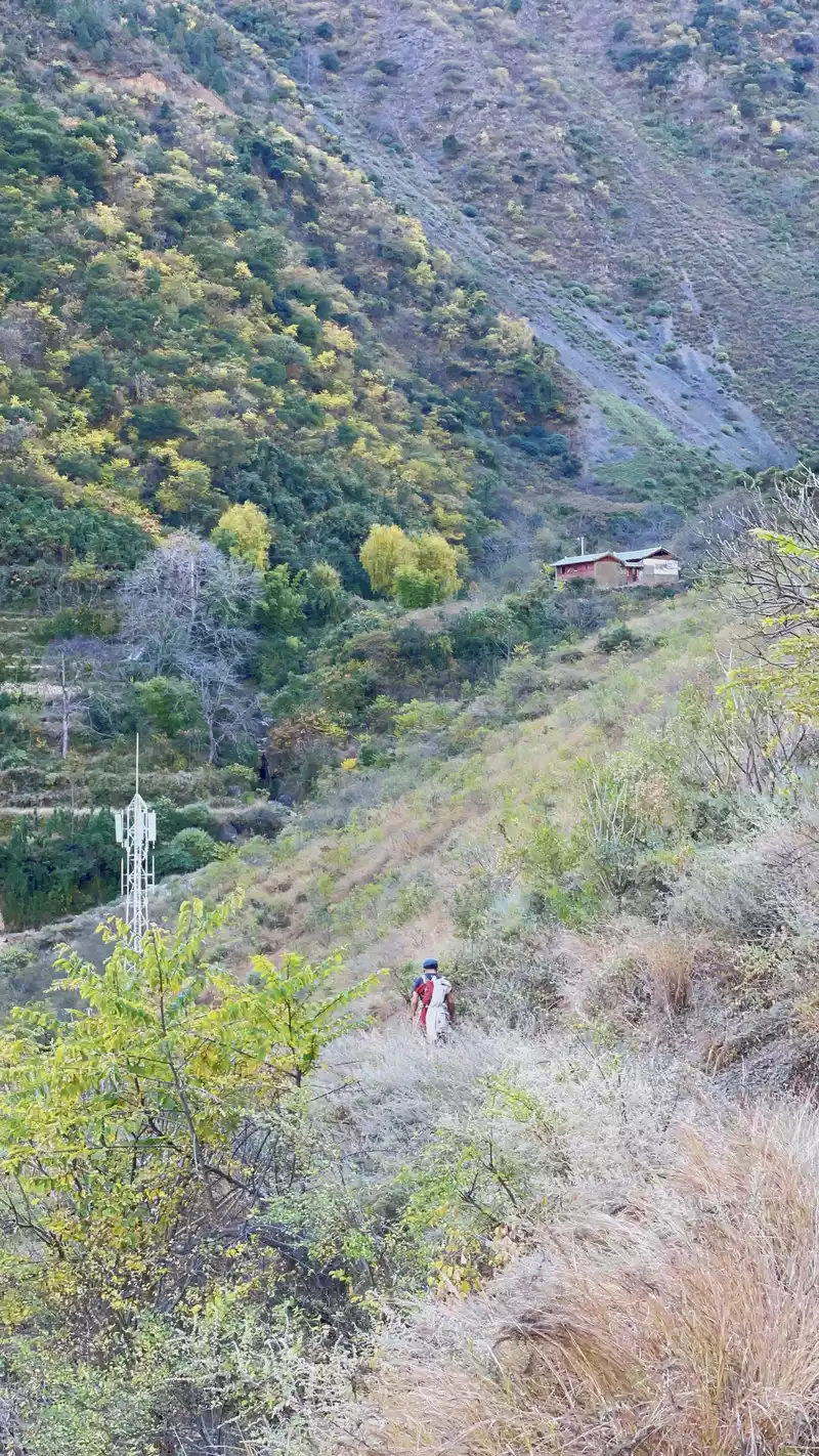 Slowly and leisurely, we descended to the entrance of the village at around 4 o'clock. At this time, we remembered that we didn't leave the phone number of our mountain companion, so we couldn't miss the appointment, so we had to wait. At 5 o'clock, I finally saw people in the mountains. I saw 3 people first, then 2 people appeared, and then I saw 1 person behind me. I was still worried about overloading, and I was thinking about what to say. The leader reassured me not to worry, and we would discuss it later when they arrived.