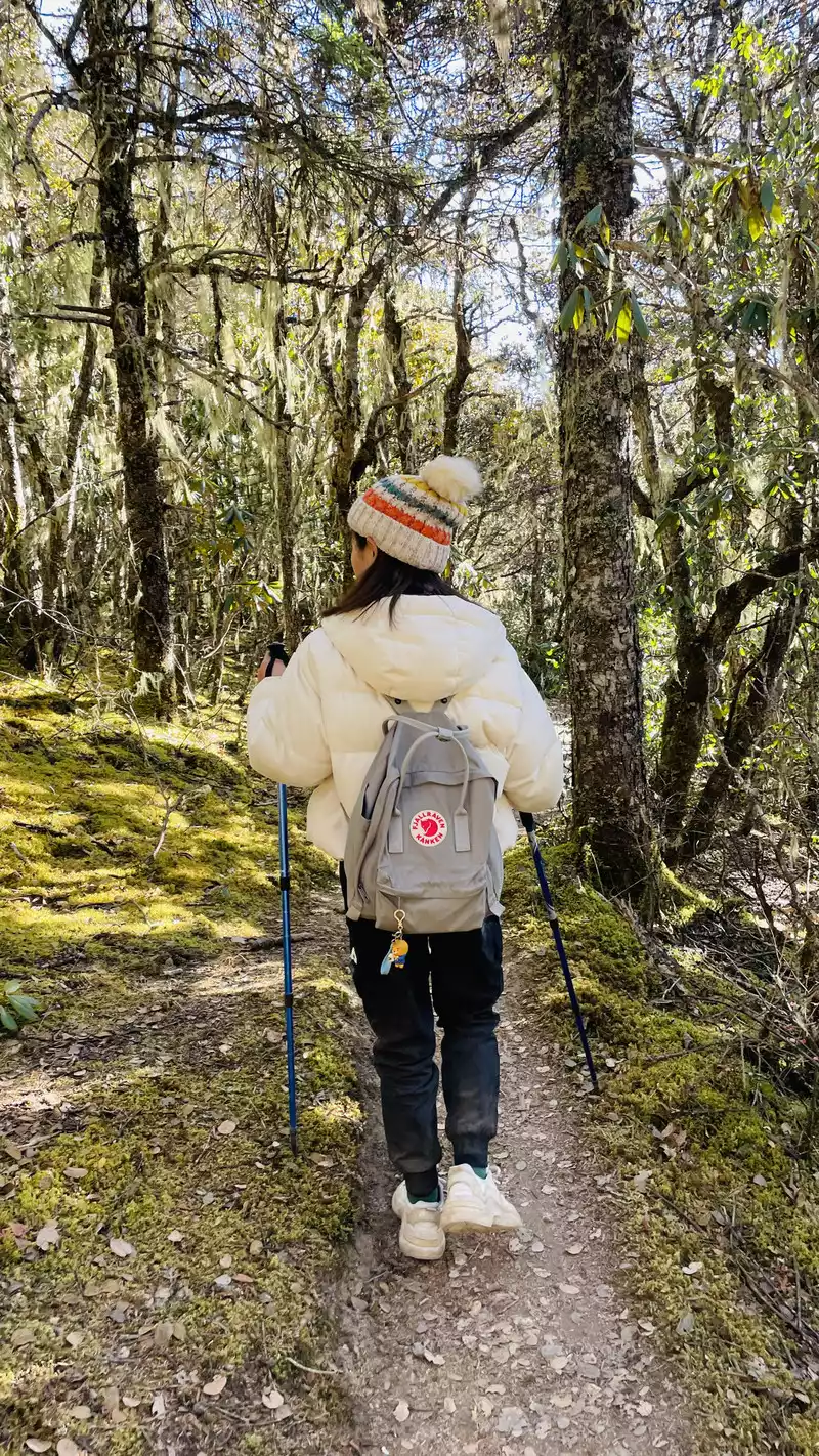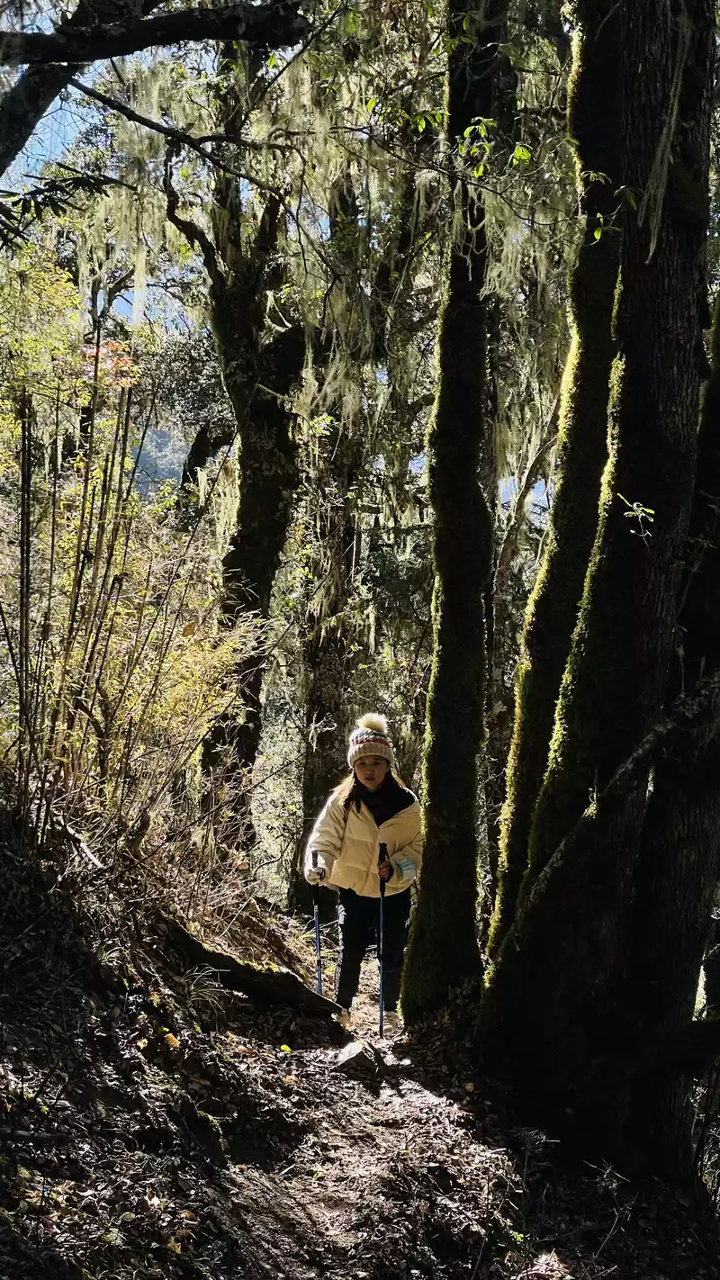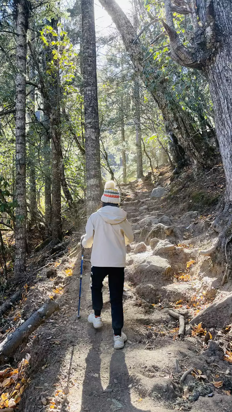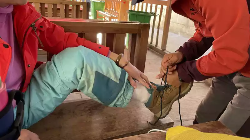 My sister was carrying a heavy bag, so the tour leader helped both sisters pack their backpacks, and we set off together. It wasn't easy! Finally, we all made it through the hike together.