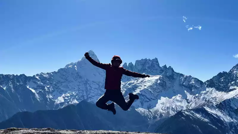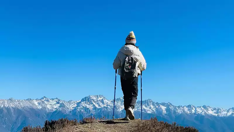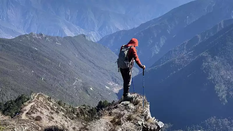 The ridgeline is approximately 4,200 meters above sea level. As we ascend, we encounter some narrow, rocky paths that can be challenging to navigate, so please be careful. This is not recommended for those afraid of heights.