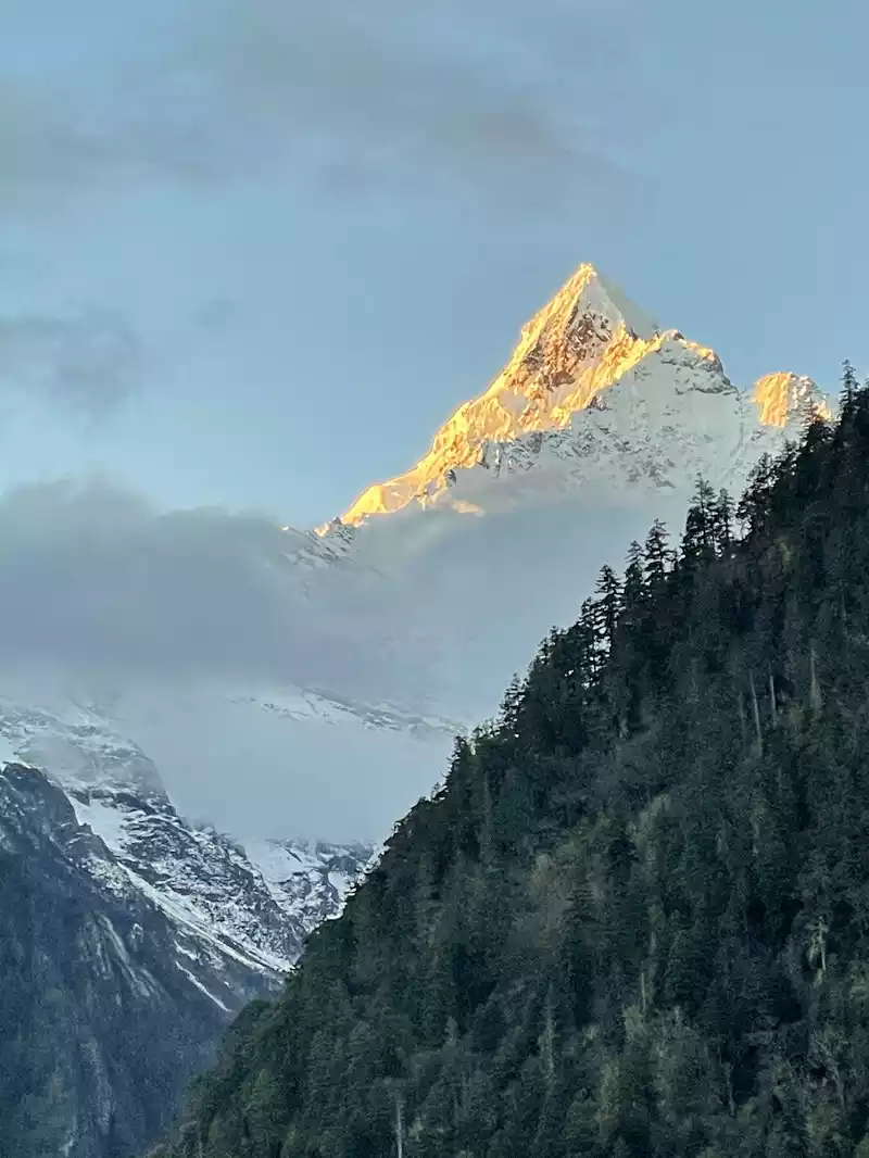 After taking photos of the sunrise over Jinshan Mountain, our leader gathered everyone for breakfast and packed our bags. Next, we headed to Yubeng, where my favorite part of the hike began.