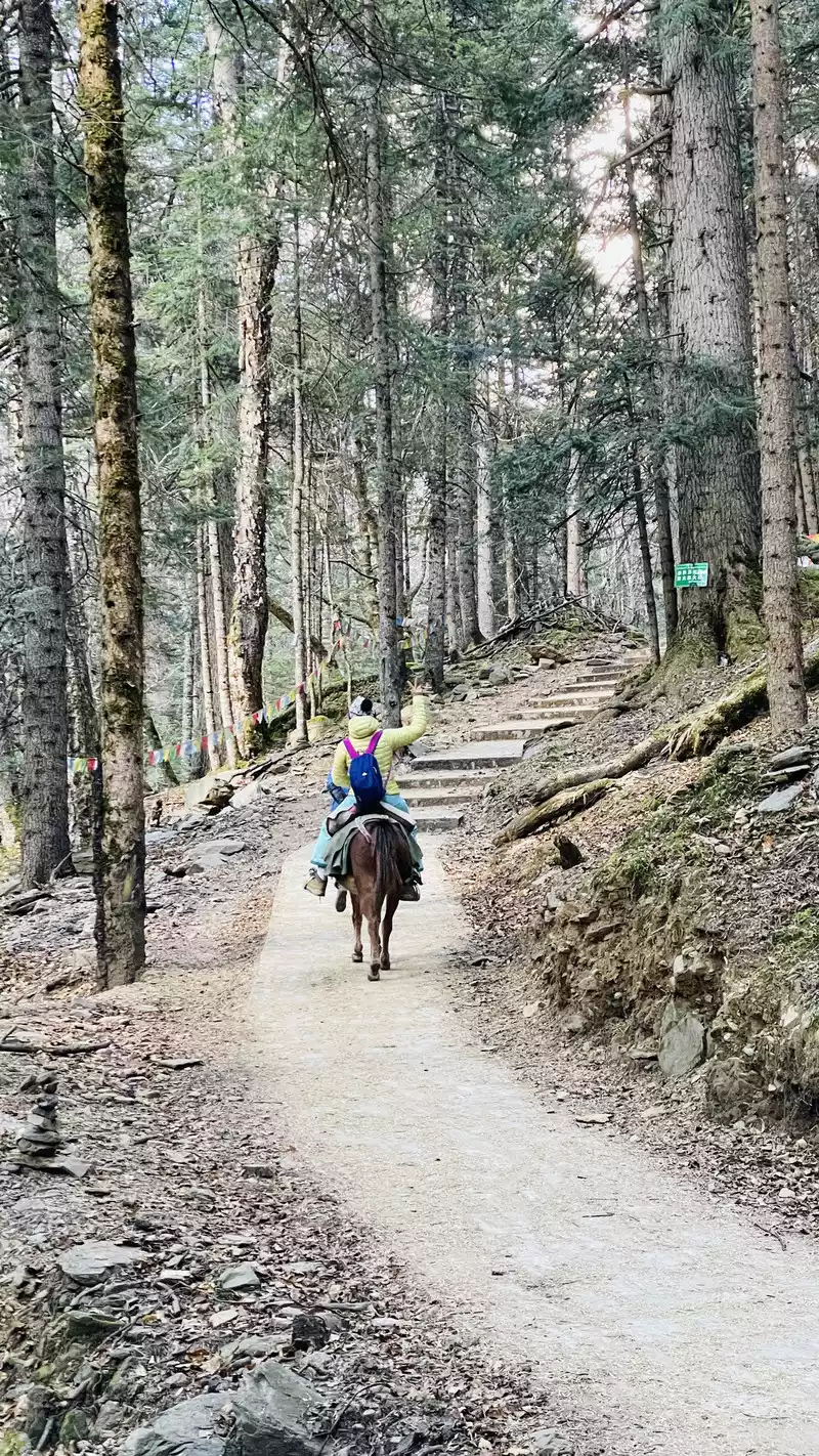 The return trip was even easier. To accommodate the locals, the Jiangsu woman still hired mules, but the mule train's starting point was about 1 or 2 kilometers beyond the Divine Waterfall, so we walked together for a while.