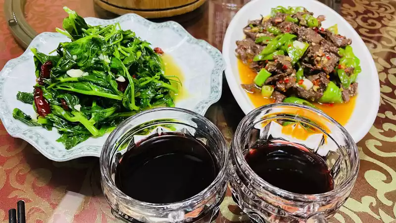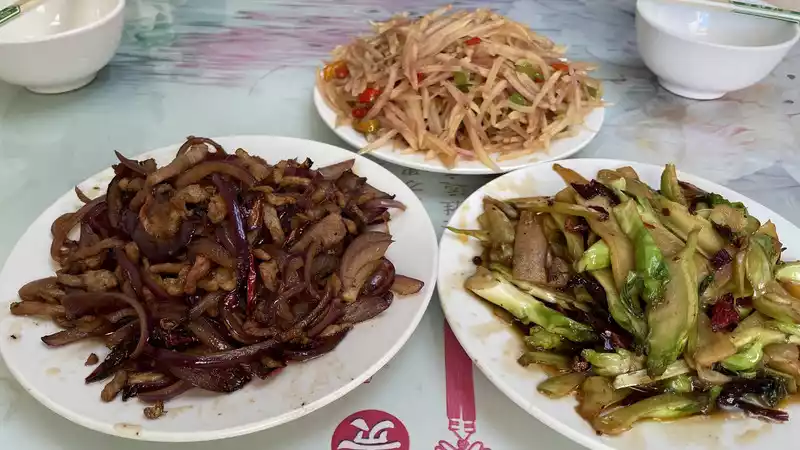 Back at the inn, while waiting for lunch, I chatted with the owner’s mother-in-law in the courtyard. She was so hospitable that she even brought out dried fruits to entertain us. A table of guests from Beijing next door were drinking and eating. The boss said it was the liquor brewed by her mother-in-law. My sister was attracted to taste it and after the meal, she took 5 pounds of it with her.
