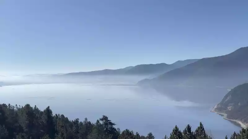 When I came, I just looked forward, ignoring the unique autumn colors of the forest behind me. The meandering Jinsha River was full of colorful forests.