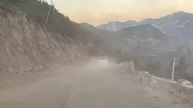 After reaching Nanzheng Pass, we reached the road we mentioned yesterday, traveling by car. This was the point where I once again felt the wisdom of taking the car into the village. After that, we ate dirt non-stop for nearly an hour.