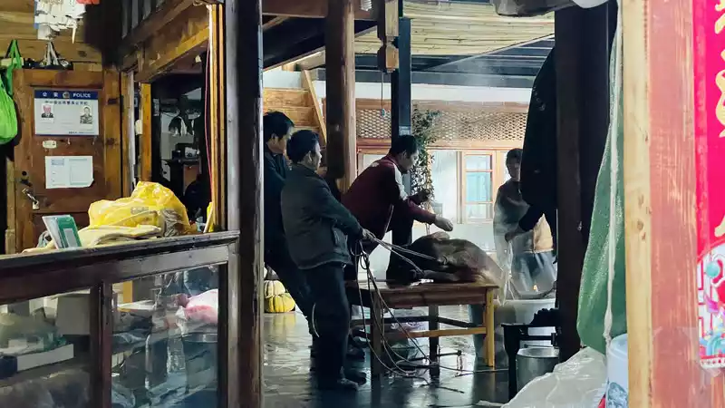 Xia Yubeng isn't as well-developed as Shang Yubeng, with many areas still under construction. Our tour guide told us we'd booked a hotel run by an elderly couple from Guangdong. Before checking in, we'd assumed they were a sentimental, artistic couple, lazily sitting by the fireplace, brewing coffee and reading.