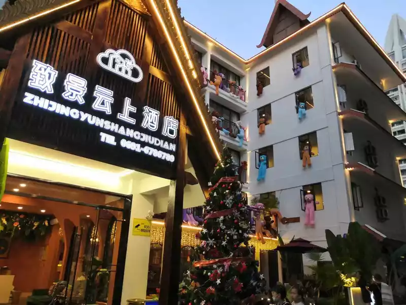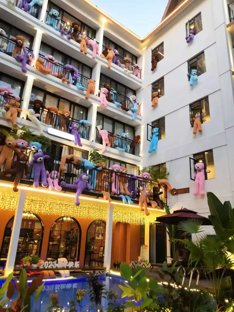 Our hotel is the Miyue All-Smart Resort Hotel (Xishuangbanna Gaozhuang Night Market Branch), inside the newly built Peacock City (a landmark building). We booked a three-bedroom, one-living room room. The owner and staff were very welcoming. We stayed for six consecutive nights. Downstairs is the Gaozhuang Night Market. You can check the rooms and room types directly on China-TravelNote. Food, drinks, and supermarkets are all very convenient. If you want to rent an electric scooter, you can go to the supermarket owner and rent one. You'll get coupons for purchases. A word of caution: Gaozhuang has many Snoopy-style three-wheeled electric scooters for rent. These look good, but they're not very practical. If you need to use one, a regular three-wheeled electric scooter is better; it's more practical and compact. Those with good driving skills can use it, but those without are advised not to use a three-wheeled electric scooter, as it can easily scratch other vehicles. Gaozhuang is very congested, and the roads are not very wide.
