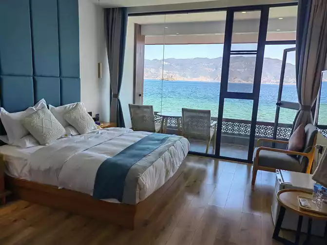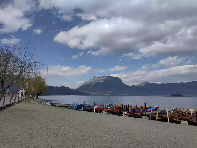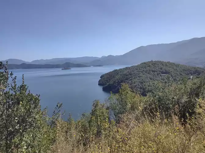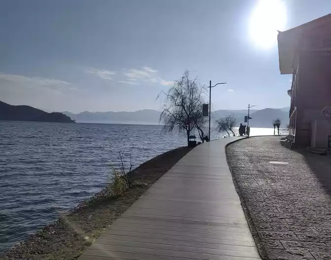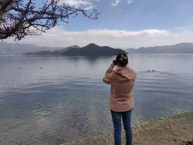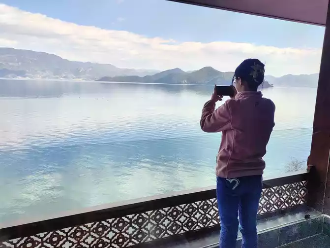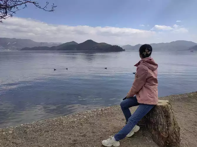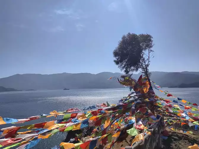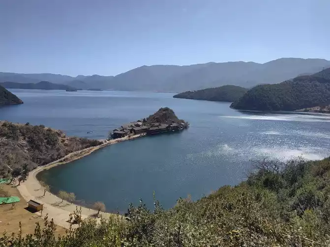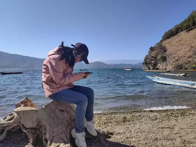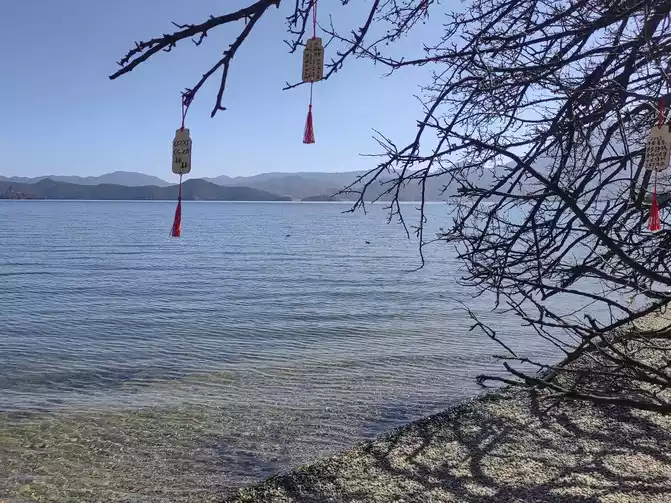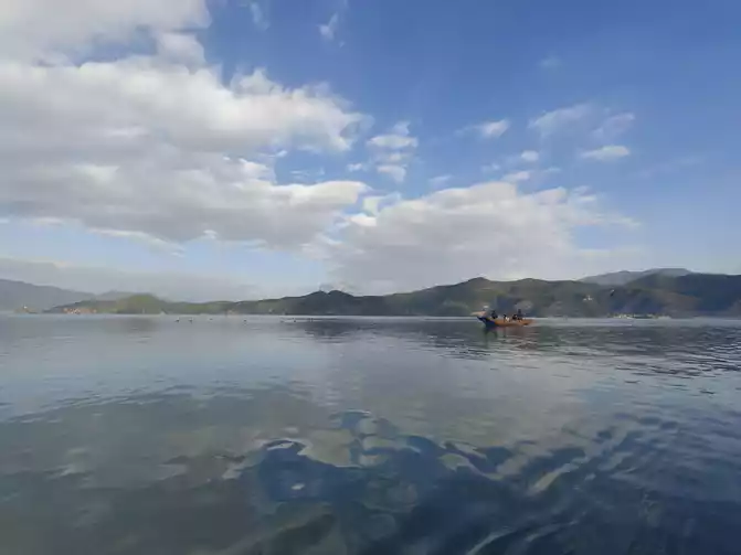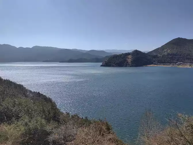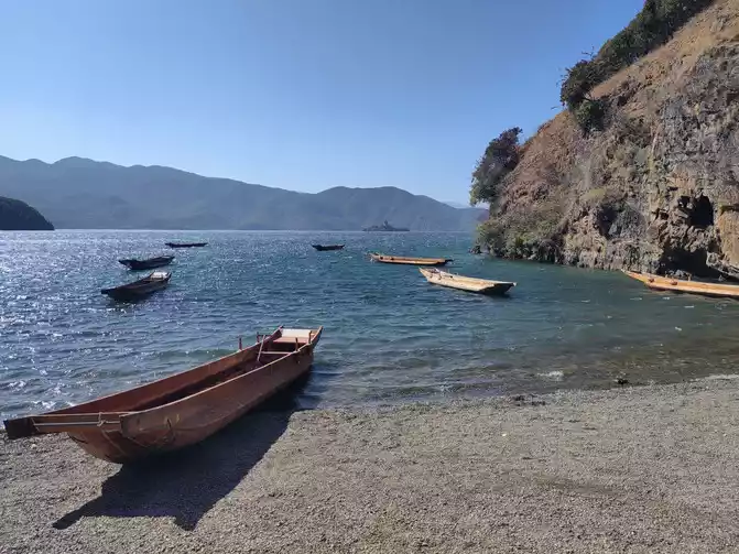 Online reviews of Lugu Lake are mixed. I think the weather has a significant impact on the scenery: on sunny days, the lake view is stunning, while on cloudy days, it's just average. Our visit was blessed with clear skies, and both the lake and sky were a brilliant, intoxicating blue.