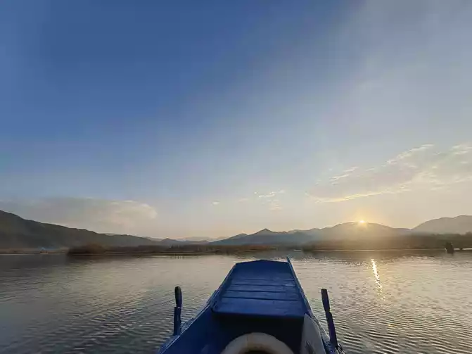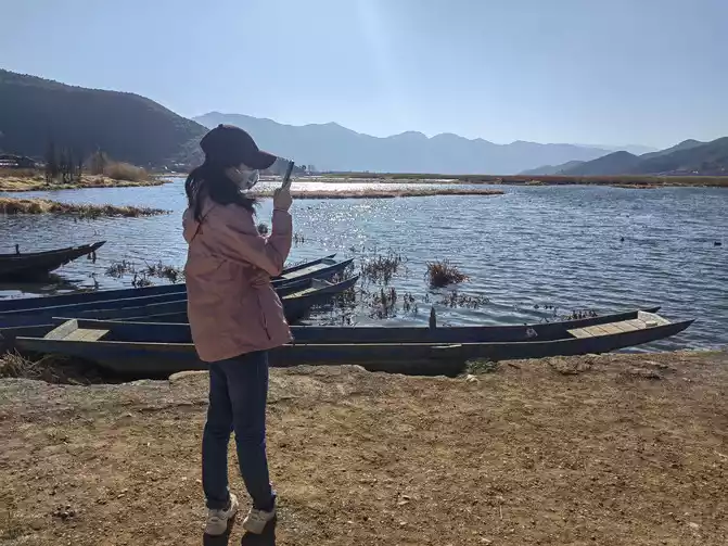 The driver of the lake tour recommended the pier for the Lugu Lake pig trough boat. At the flower sea pier, you can normally watch the sunrise and visit the grass sea reed marsh. However, the boatman of our boat did not enter the reed marsh, and there were no water lilies in this season. The scenery was not that outstanding, and it was quite cold in the morning. I was a little disappointed with this boat trip.