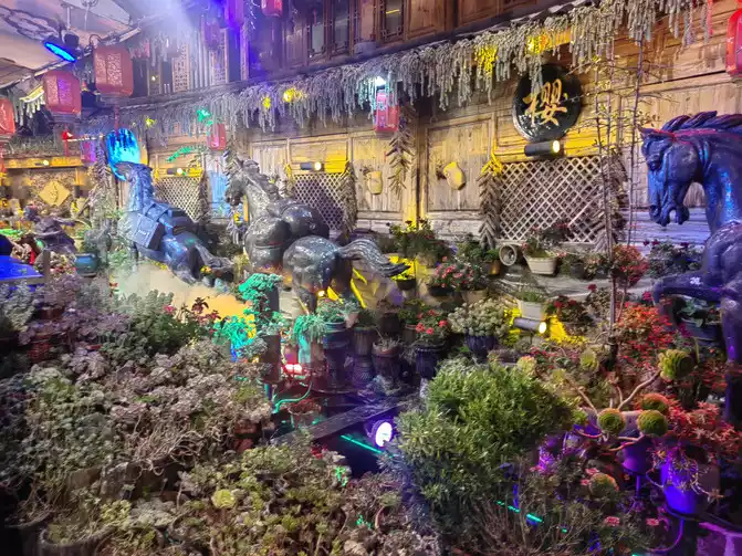 I loved the inn's courtyard, but unfortunately, I returned late both days, leaving me no time to relax and unwind. I heard there's a balcony, but I didn't use it. The ancient city is fine during the day, but it is especially lively at night, with bright lights and flowers everywhere, and it is bustling with people. Although Lijiang Ancient Town is too commercialized and the decorations are a bit gaudy, I still like it very much.