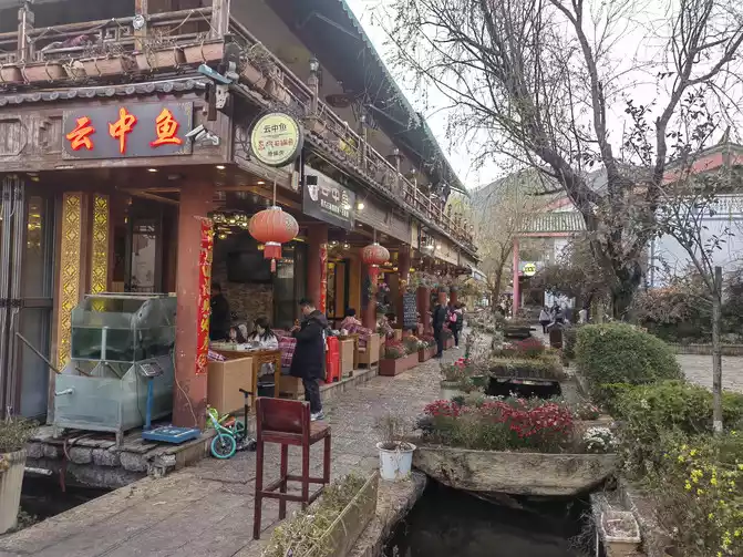 I was particularly glad for this decision. There are free guided tours every once in a while. The children found it very interesting and learned a lot from following the tours to listen to the stories of the Mu Mansion. In the evening, we took a taxi to Shuhe Ancient Town. It was indeed much quieter here, and we finally had delicious stone pot fish without having to queue.