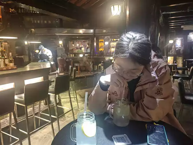After dinner, I walked around Feihua Touching Water and went to a small pub to listen to music. It was around 9 o'clock when I walked back.