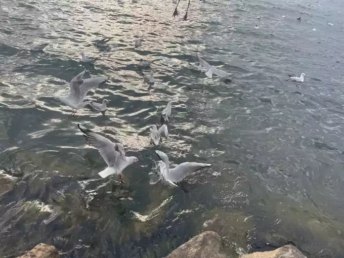 Later, when I was feeding the seagulls, I found that some of them were very brave and would directly take the dried fish from people's hands. They are so brave.