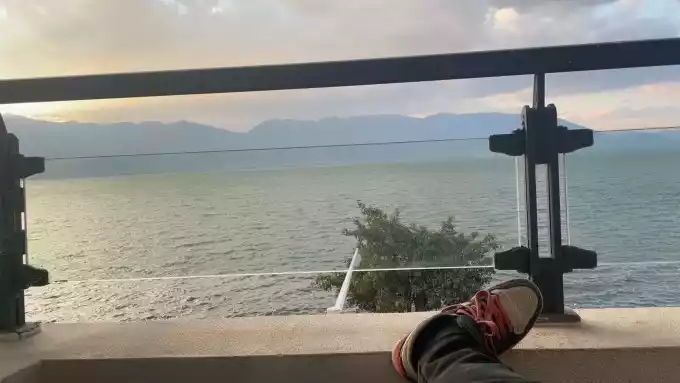 I think the most beautiful place is the edge of Erhai Lake. Mainly because there are so many seagulls here. We bought bread in advance just for the seagulls. They are not afraid of people, but they don't take food from people. We put it on the rocks nearby, and the seagulls will fly over to eat these small pieces of bread.