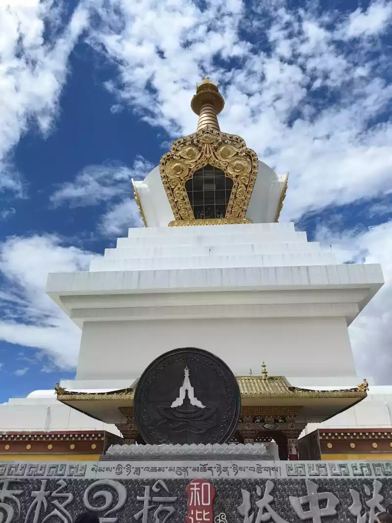 On the way, we visited Dongzhulin Temple and the Jinsha River Bend. Let's first talk about Dongzhulin Temple. This temple is actually quite old. It was founded by the Fifth Dalai Lama. However, the scenic area is not very well-known, so not many people come here. A monk showed us around. If you have time, I recommend visiting here. There are several great Vajras here. The Kalachakra mandala is a must-see. This Vajra is magnificent and splendid. Interestingly, the flesh-and-blood body of the Zatang Living Buddha can also be seen here.