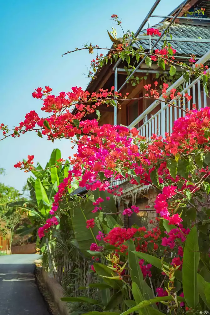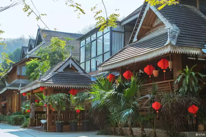 First, they all maintain a certain distance from commercialization, embracing rural tourism and highlighting traditional Dai life. Their traditional Dai-style stilt houses, imbued with religious connotations, and the tropical rainforest plants planted in front and behind the houses—jackfruit, papaya, carambola, avocado, banana, and various hanging blue flowers—become the foreground and subject of tourists' photo-ops.