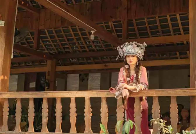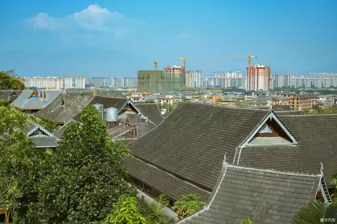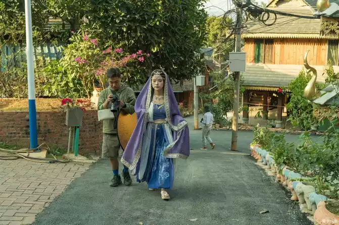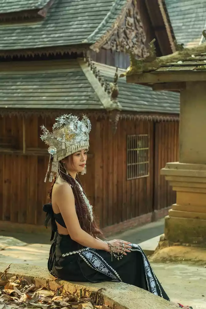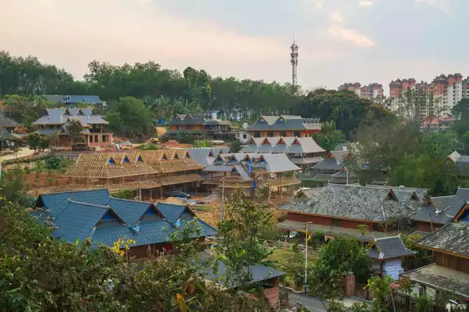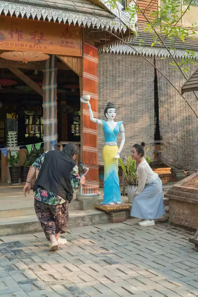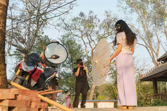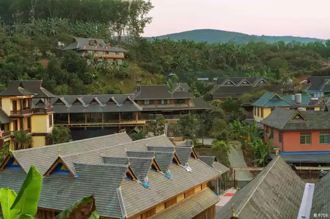 Third, they are relatively far from the urban area of Jinghong. There are no shuttle buses or public transportation, so you have to drive yourself. The distinctive Dai villages surrounding Jinghong City offer ideal natural outdoor studios for photoshoots. Manhena Ancient Village, located within the Xishuangbanna International Tourism Resort and closest to downtown Jinghong, is a natural choice. Firstly, it's close; secondly, it's free; and thirdly, most importantly, it's the least urbanized of the nine Mannongfeng villages in Jinghong City, a rare Dai ancient village where modernity meets antiquity in perfect harmony. Its neighbors include the Xishuangbanna Intercontinental Hotel and two of the largest state-owned and privately-owned real estate companies. Their newly constructed resort villas and high-rise buildings form a solid fence around the village.