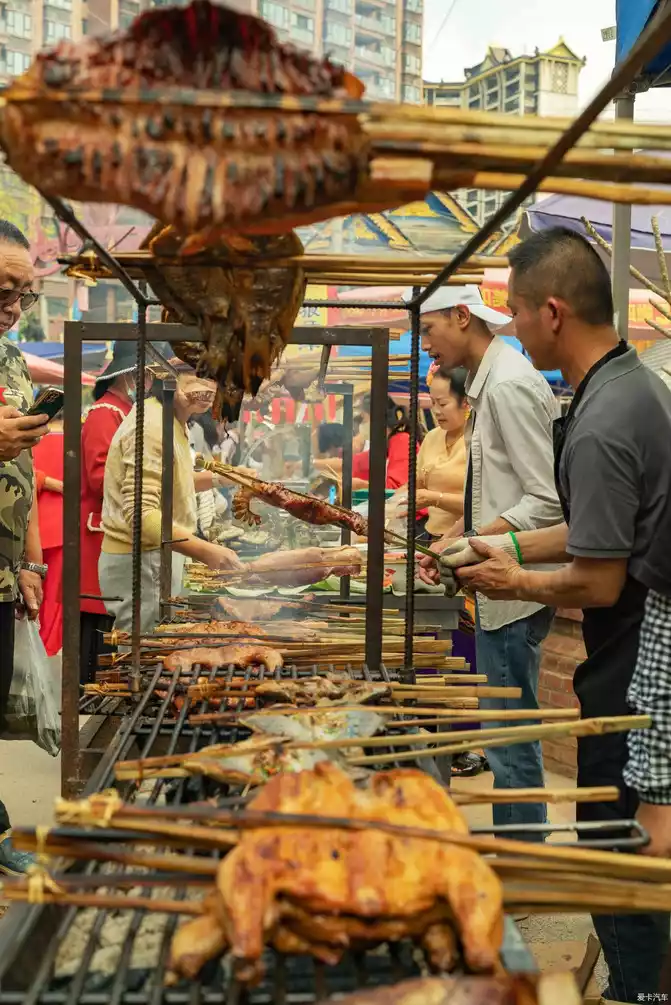 At the Manhena market, authentic Dai barbecue always tempts visitors. The Manhena village gate, perched on Ronglin Avenue, is far more lavish than many other Dai villages, thanks to its rarity within the city.