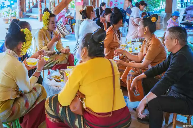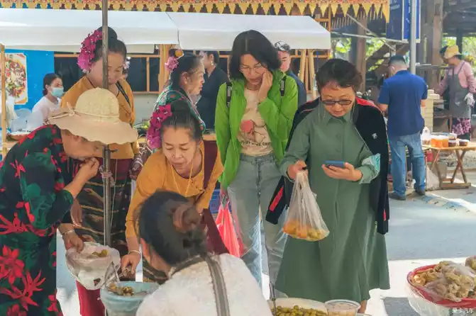 The weekly market is a great excuse for Manhena villagers to gather with friends for a meal. Han people don't know how to eat many Dai dishes. You can refer to their ways of eating, or ask them in person for the names, cooking methods and eating methods of the dishes.