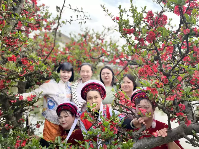 Bai women in their best clothes at the Qifeng Mountain Pear Blossom Festival