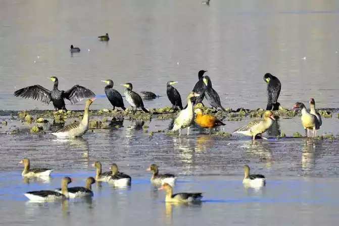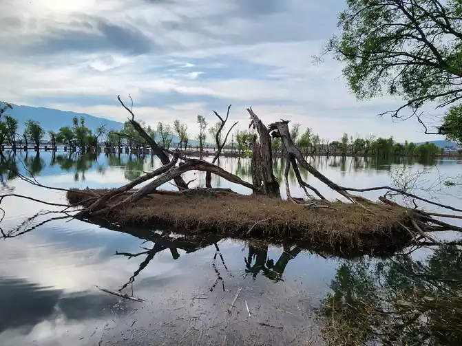 There are over 600 bird species in the Caohai Wetland. Hundreds of bird species in Heqing Water Village have been neighbors with the people here for generations. They don't disturb each other, yet they live in harmony. Throughout the changing seasons, they meet, say goodbye, and reunite... The eight bowls of earthenware served at a farmhouse on Qifeng Mountain are truly delicious. The men and women of the water village are like the opposite sides of a river, echoing each other while each enjoying their own unique scenery.