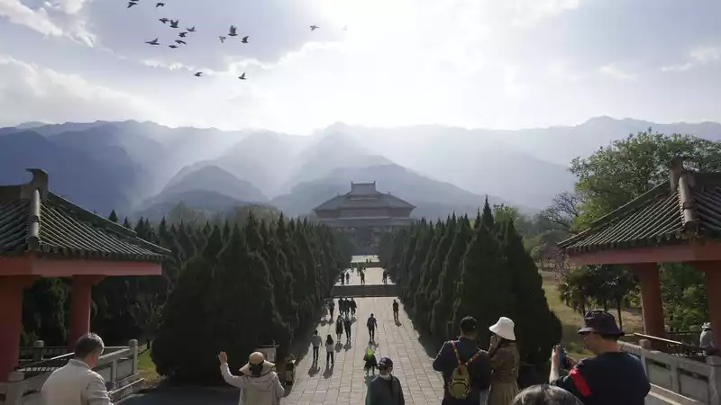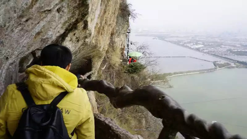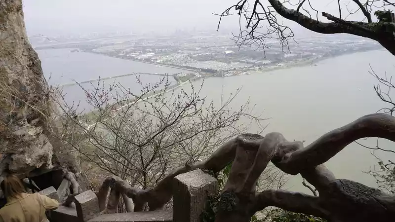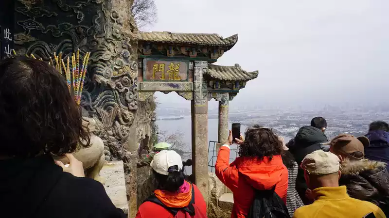 After taking the Xishan Ropeway cable car up the mountain, there is still a steep stone staircase to walk to the Longmen.
