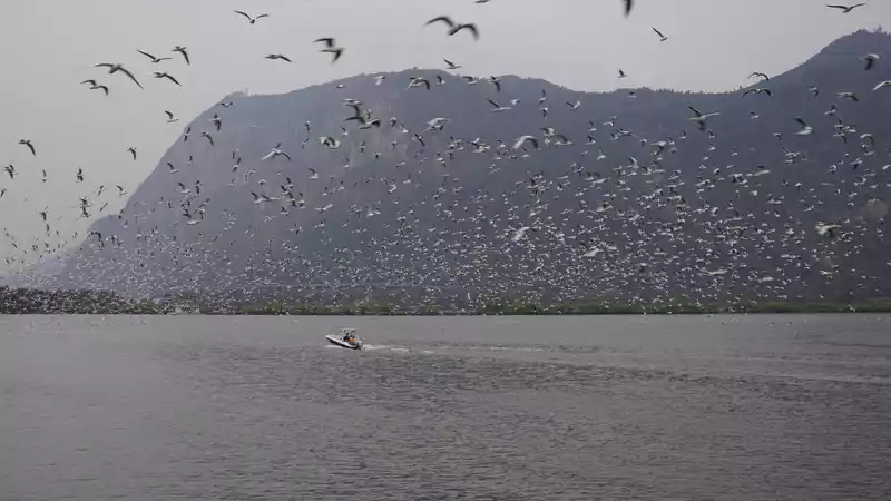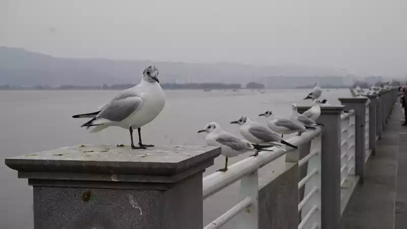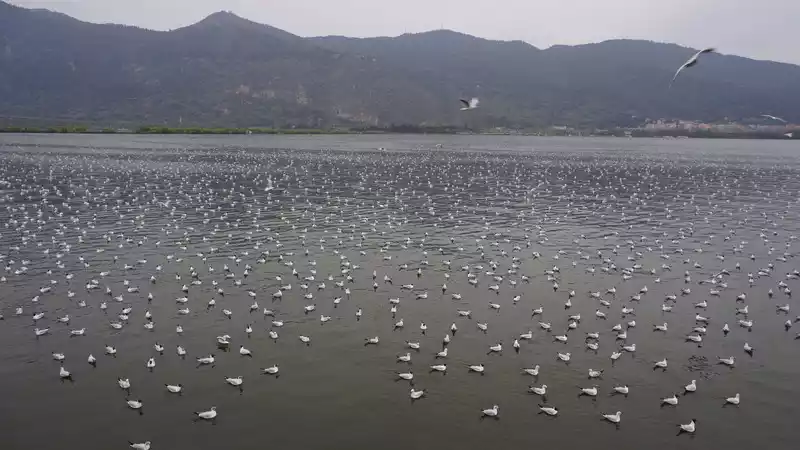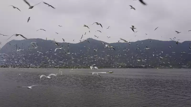 After coming down the mountain to Haigeng Dam, it happened to be evening, and a large number of seagulls were foraging for food in the tourist feeding room. It was spectacular.