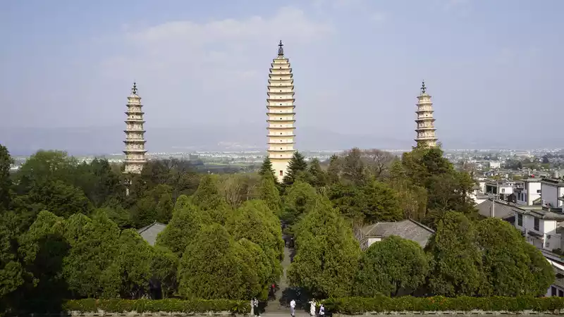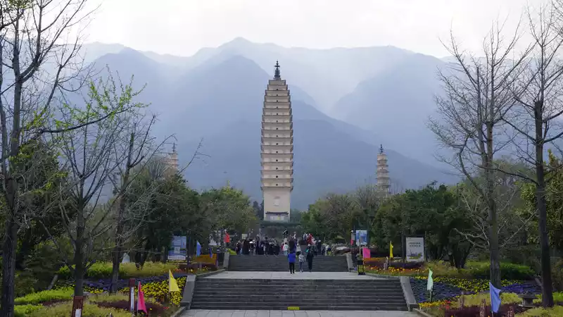 Kunming takes the train to Dali, After lunch, come to the Three Pagodas and check in at the Dali landmark.