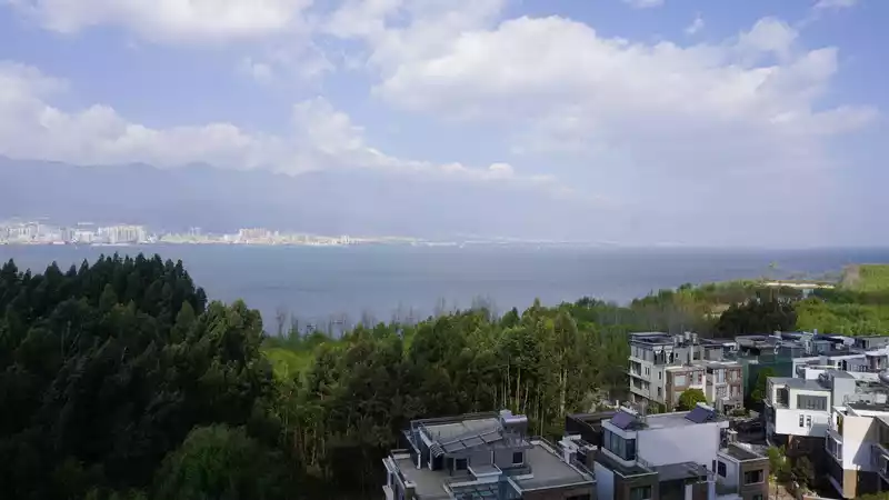 3.16 In the morning, I enjoyed tea and enjoyed Erhai Lake on the balcony of my apartment.