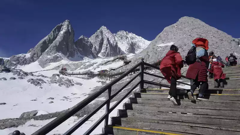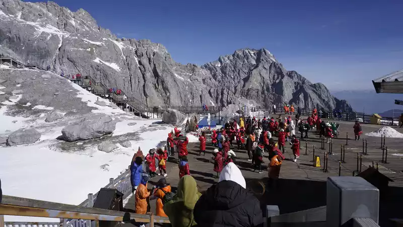 Tourists gather on the 4506-meter viewing platform, and people with high reactions can go to the infirmary on the platform to breathe oxygen and seek help.