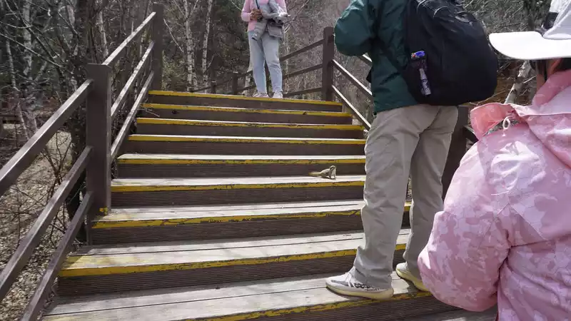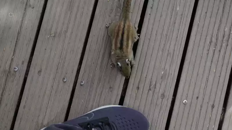 Squirrels are plentiful and not afraid of people. It seems to know how to approach tourists to forage.