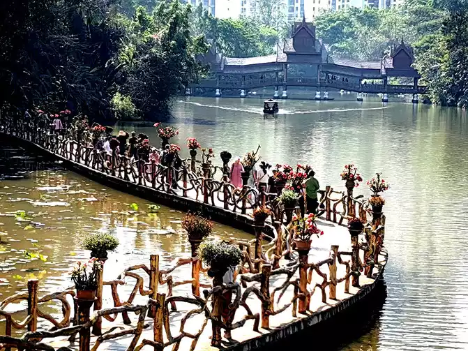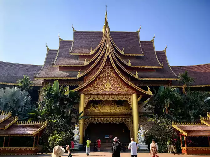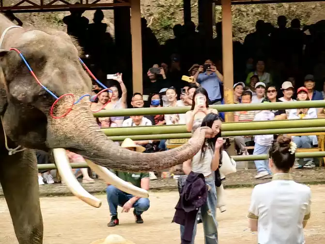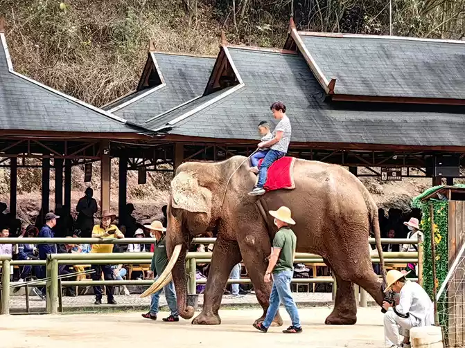 Yunnan has rich and attractive tourism resources. Although I've traveled to Yunnan many times, I'd never been to the southwestern region, and I'd always wanted to visit. So, I invited some friends and we headed out on a spontaneous road trip from Lijiang. Our first stop was Xishuangbanna, at the southern tip of Yunnan. The drive from Lijiang to Banna takes about ten hours. Of course, we weren't in a rush, so we stayed overnight in Jingdong along the way, which was a relaxing experience. Xishuangbanna Dai Autonomous Prefecture, with its capital in Jinghong City, lies on the southwestern border of Laos and Myanmar. It's home to 13 ethnic minorities, primarily the Dai. Two things struck me upon my first visit to Xishuangbanna. One was the warm climate. I layered up on departure, and upon arrival, I quickly changed into a short-sleeved T-shirt, as it was warm and comfortable in the tropical north. The other was the striking architecture. Whether high or low, the buildings all feature small, pointed roofs, strongly influenced by Theravada Buddhism. They have Dai characteristics, but also a touch of the exotic South Asian style. Upon arriving in Banna, our first stop was, of course, the Wild Elephant Valley. We navigated directly to the Wild Elephant Valley. Although it was afternoon, the traffic outside the scenic area was extremely congested. Perhaps due to the allure of wild elephants and the rebound in tourism, we could only enter through the north gate. There wasn't much to see here. Just steps leading up to a suspended plank road, weaving through tropical foliage. It's said to allow visitors to observe the life and tracks of wild elephants. But where in the vast rainforest can one find such sights? Patience and luck are key. The plank road is long and winding, and even if you don't see the elephants, it's still a good workout. The highlight of Wild Elephant Valley is the south gate area. The orchid garden displays exotic flowers and trees, while the butterfly garden is filled with a variety of butterflies. Perched among the flowers and greenery, you can enjoy the view and take photos to your heart's content. It's truly exhilarating! The highlight of Wild Elephant Valley is undoubtedly the elephant area, or elephant school. Outside, elephants interact with visitors, feeding and taking photos. Or you can go for an elephant ride. The scheduled elephant shows are packed with people. A team of elephants performs a variety of themed performances, including football, beauty pageants, and parades. These performances bring visitors to a climax. The elephants' gentleness, intelligence, and adorable nature are on full display, leaving unforgettable memories for visitors.