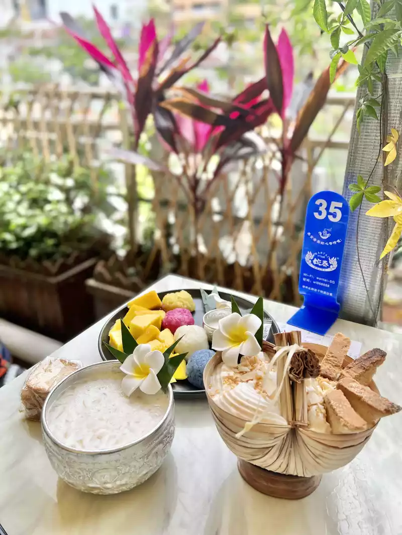 This restaurant is incredibly stylish and must-take photos! It perfectly blends French romance with Thai charm! Surrounded by greenery and shaded by trees, it exudes a fresh, elegant atmosphere! Every corner is photogenic! No wonder it's become an internet-famous check-in spot. Zhao Lusi, Yi Mengling, and Li Xiaolu have all been here, so many fans check in. The Tom Yum Soup is incredibly fresh and generously prepared. The mango sticky rice, a visually appealing glutinous rice dish, is also a must-try! I was expecting the food to be less appealing in this designer restaurant, but it was a complete surprise.
