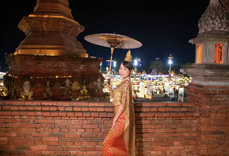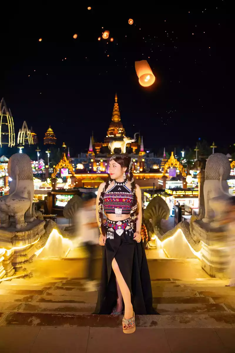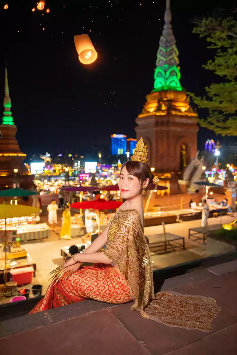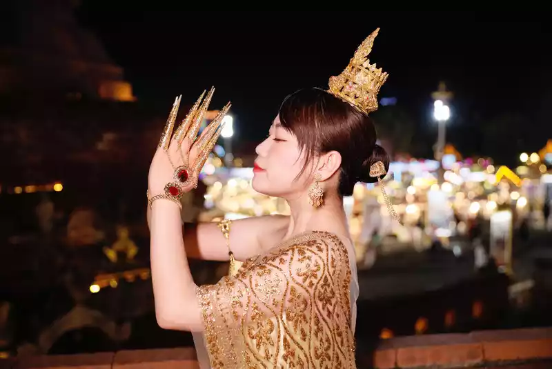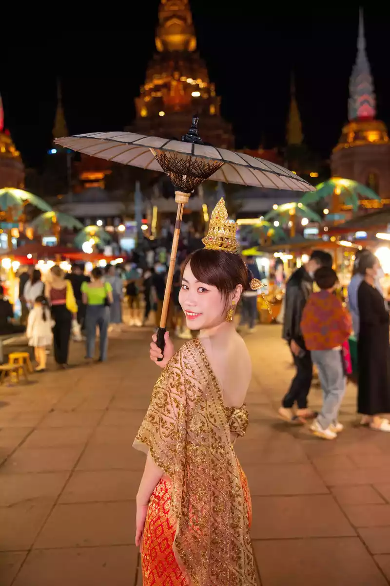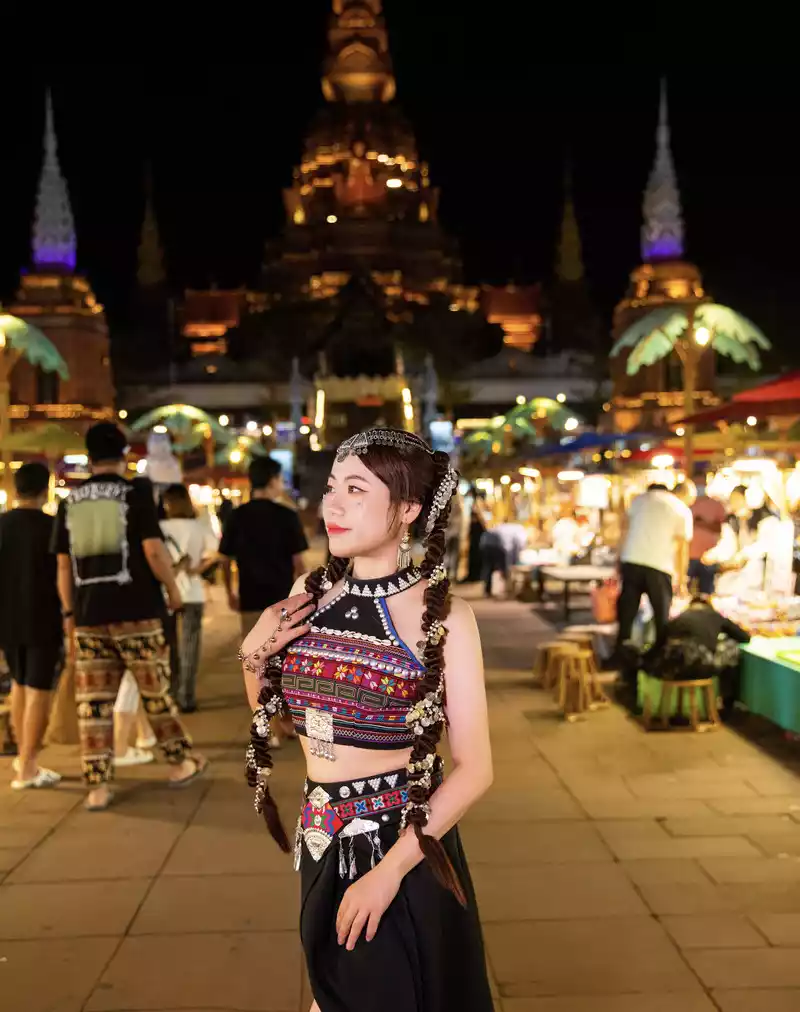 At that time, I couldn't help but experience what is locally known as the "Dai Princess" series! I must emphasize that the outfits used for this travel shoot are definitely not traditional Dai clothing. Personally, I think they're more of a blend of online celebrity Dai and Thai aesthetics, with the following characteristics: off-shoulder and backpack-friendly arms; vibrant colors; and crown-like headdresses. Due to the recent COVID-19 outbreak in Banna, the night market was extremely crowded when I visited. The makeup and styling sessions were all done one-on-one, making the shoot effortless and efficient! The price is 399, a fantastic value!